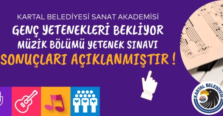 Geçtiğimiz günlerde Kartal Belediyesi Sahil Ek Hizmet Binası’nda yetenek sınavının gerçekleştirildiği ve İstanbul’un birçok ilçesinden 7-15 yaş aralığındaki yüzlerce yeteneğin; piyano, keman, gitar, çello, yan flüt, perküsyon, keman, viyola ve koro branşlarında eğitim almak amacıyla başvurduğu Sanat Akademisi Müzik Bölümü’nde eğitim almaya hak kazananlar listesi açıklandı.