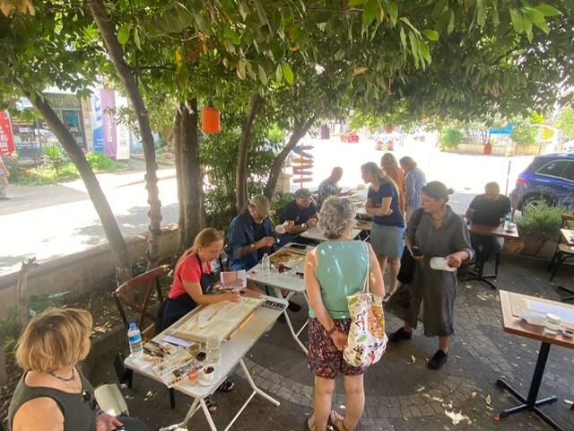 Sanatçı Tülay Sayılgan, kahve ile resim yapmanın zor olduğunu belirterek, “Koyu renkleri elde etmek kahve ile pek kolay değil. Biz de koyuluğu elde etmek için, boyaları üst üste getiriyoruz. Bu etkinlik, suluboya tekniğinin, kahve ve çay gibi farklı materyallerle yapılabileceğini göstermemizi sağlıyor.” dedi.