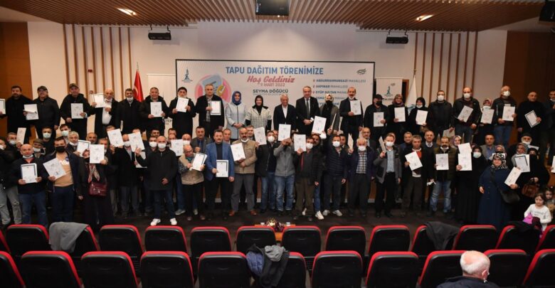 9 Mart Çarşamba günü Sancaktepe Belediye Başkanlığında düzenlenen ve Başkan Şeyma Döğücü’nün de hazır olduğu programda 8 mahallede 74 parselde toplamda 106  hak sahibi tapularına kavuştu.