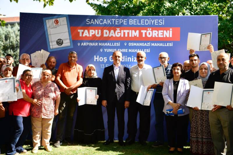 Sancaktepe Belediyesi ilçede yaşanan tapu sorunlarını çözüme kavuşturmaya devam ediyor. Bu kapsamda Osmangazi, Akpınar ve Yunus Emre Mahallesi’nde tapularına kavuşmayı bekleyen 49 hak sahibi vatandaşımız düzenlenen törenle tapularına kavuştu