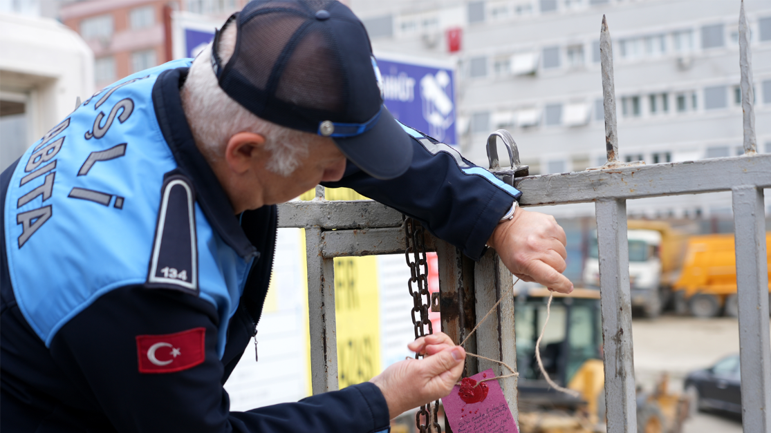 Tutanak tutarak çalışmaları durduran ekipler, inşaat alanının girişinde bulunan kapıya da mühür vurdu.
