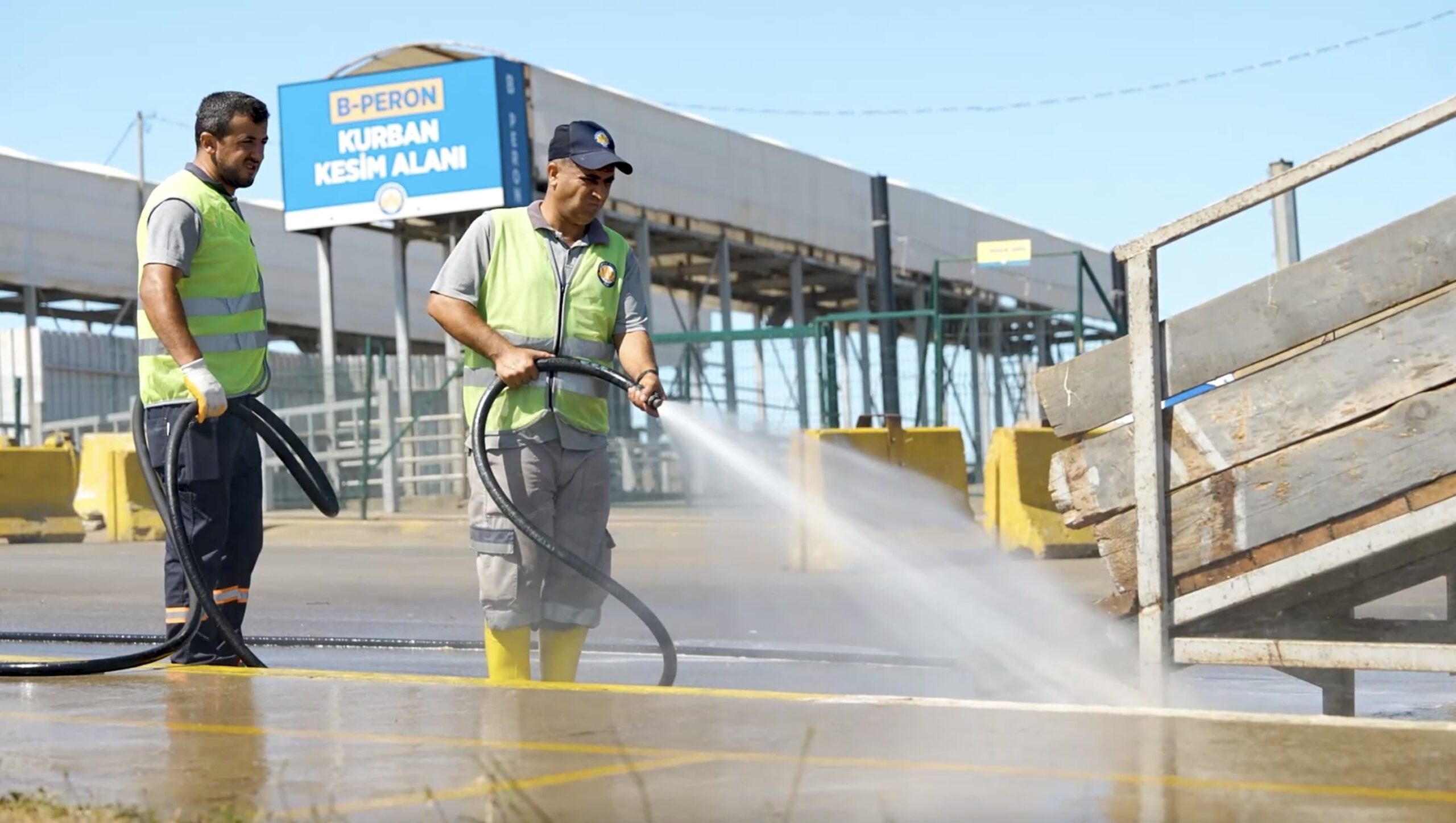 “Sultanbeyli Belediyesi Kurban Satış ve Kesim Alanı’nda işlemlerin büyük ölçüde tamamlanmasıyla temizlik süreci başladı. Temizlik İşleri, Fen İşleri, Park Bahçeler, Destek Hizmetleri ve Zabıta Müdürlüklerine bağlı toplam 60 personelle temizlik süreci kapsamlı bir şekilde yürütülüyor. Dört koldan yürütülen temizlik kapsamında; katı atık ve hayvansal atıkların iş makineleriyle toplanması, çadırların sökülmesi, mekanik ve elle süpürme, yıkama ve kimyasal dezenfekte, veteriner hizmetleri tarafından ilaçlama yapılması, sinek ve haşerelere karşı kireçleme işlemleri tüm hızıyla sürüyor.”