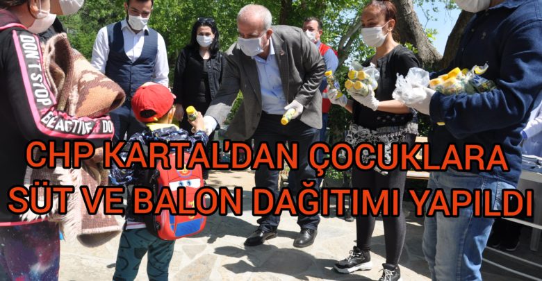 Cumhuriyet Halk partisi Kartal ilçe Başkanlığı tarafından, 0- 14 yaş çocuklara süt ve balon dağıtımı yapıldı.