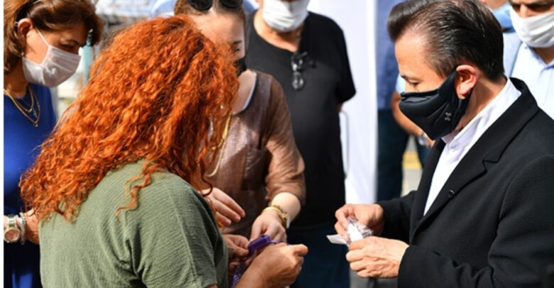 Tuzla’da Koronavirüs salgını nedeniyle alınan tedbirler her geçen gün daha da sıklaştırılıyor. Tuzla Belediyesi, mesafe, maske ve hijyen konusunda yapılan denetim ve bilgilendirmelerin dışında yeni bir uygulamayı hayata geçirdi. Bu kapsamda vatandaşların gün içerisinde hijyenlerini sağlamasını kolaylaştıracak el dezenfektan bilekliği dağıtımı yaptı. Tuzla’nın en işlek caddelerinden birisi olan İstasyon Caddesi’nde gerçekleştirilen dağıtıma Tuzla Belediye Başkanı Dr. Şadi Yazıcı da katıldı. Başkan Yazıcı, bileklikleri vatandaşlara tek tek dağıtarak nasıl kullanılacağını anlattı. Ayrıca vatandaşlar mesafe maske ve hijyen kurallarına uyulması konusunda uyarılarda bulundu. Bilekliği alan bir vatandaş ise dezenfektan bilekliği hakkında, “Yılın icadı” dedi.