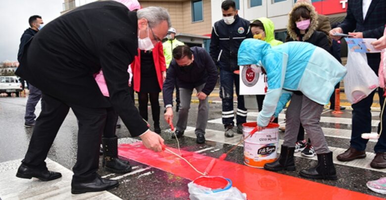 Tuzla’da Yaya Geçitleri Kırmızıya Boyandı