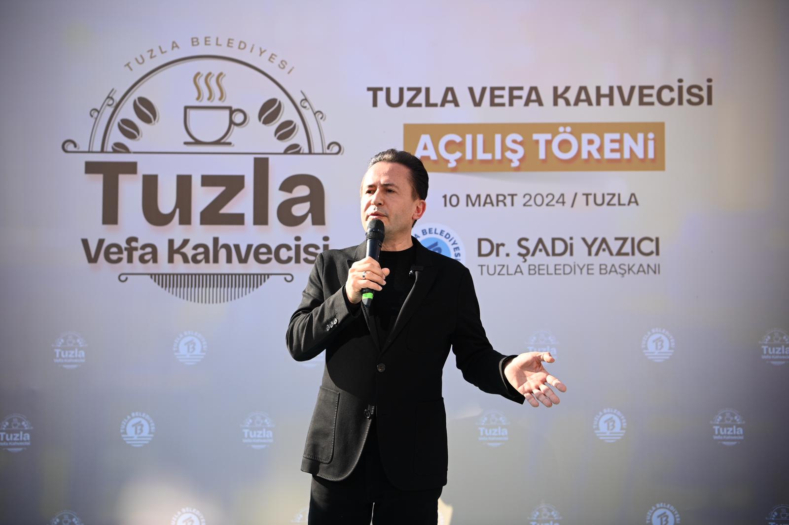 Açılışta konuşan Tuzla Belediye Başkanı Dr. Şadi Yazıcı, burasının sadece bir kahveci değil, aynı zamanda bir vefa noktası olduğunu söyledi. Yazıcı, “Bu meydan, mübadele döneminde Rum halkının yerleşkelerinin başında gelen Çeşme Meydanı’dır. Biz de bu meydanda, Tuzla’da oturan vatandaşlarımızın anılarını tekrar yaşatabilmeleri için Tuzla Vefa Kahvecisi’ni açtık. Kahve bahane, asıl önemli olan Tuzla’daki hizmetlerimizin güzelliği. Bir kahvenin kırk yıl hatırı vardır. Bu hatırı da Tuzlalılardan hep gördük, görmeye de devam ediyoruz” dedi.