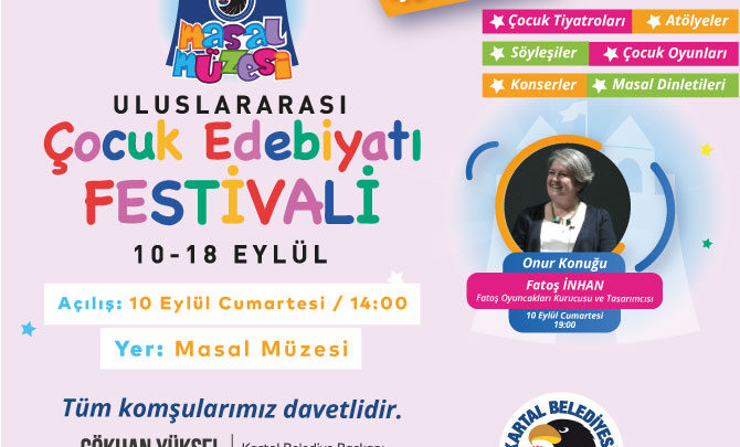 Aileleri ve eğitim kurumlarını da içine alan, bilimin ışığında sağlıklı iletişim kurmanın çocuklar üzerindeki etkilerine inanan “Kartal Belediyesi Masal Müzesi Uluslararası Çocuk Edebiyatı Festivali”; söyleşiler, eğlenceli tarih sohbetleri, konserler, çizgi film gösterimleri, tiyatrolar, kukla tiyatroları, geleneksel çocuk oyunları, gölge oyunları, masal anlatımları, çocuk yazarlarından kitap imzaları ve drama atölyelerini kapsayan geniş bir yelpazeyi içeriyor.